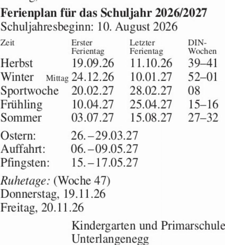 31.12.2025 UnterlangeneggAnmeldung für den Kindergarten