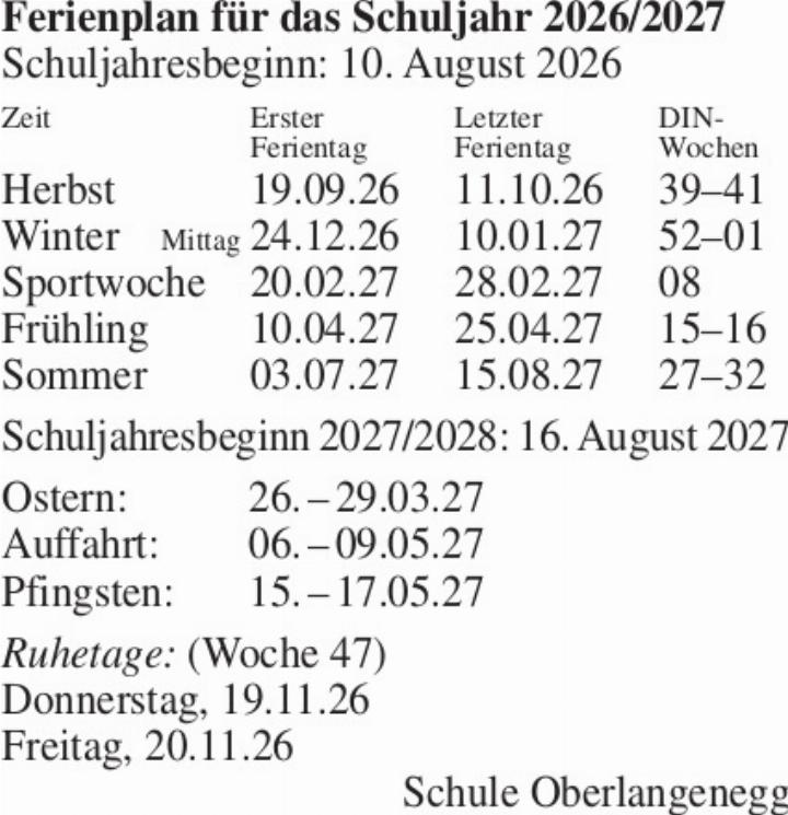 31.12.2025 OberlangeneggSchulpflichtig für das Schuljahr 2026/2027 werden Kinder,