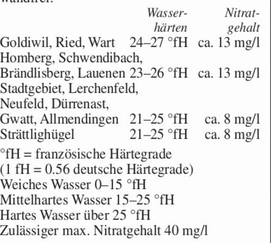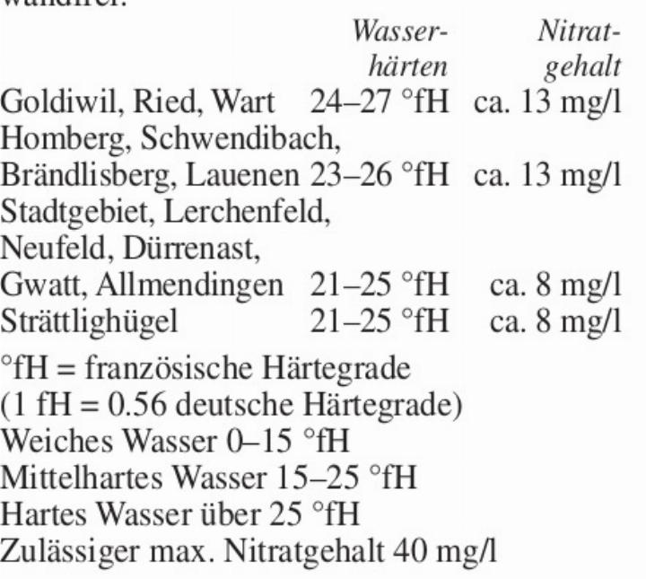 Für das Gebiet Obermatte in Goldiwil sind die Werte der Wasserversorgung Heiligenschwendi zu beachten.