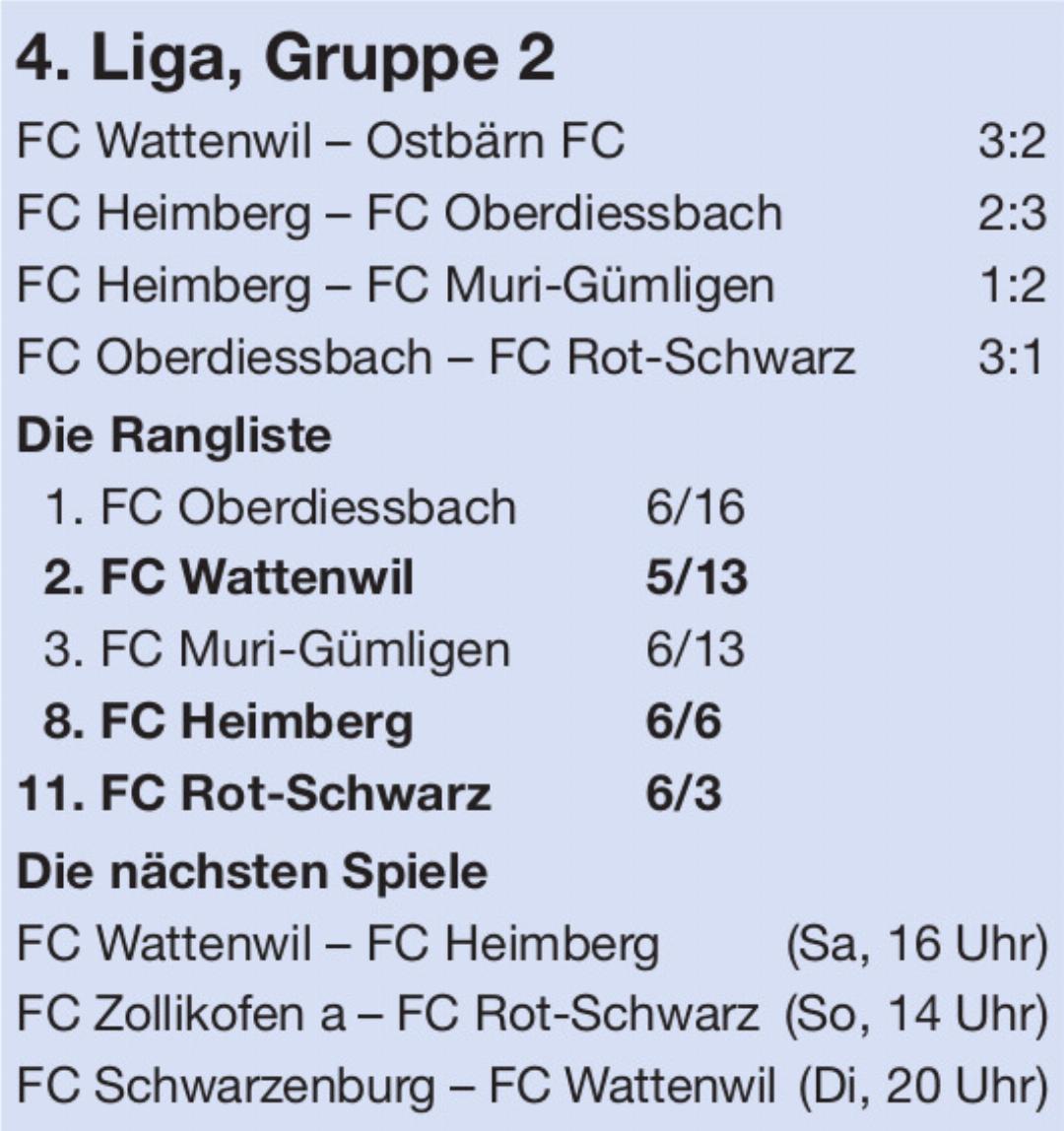 Birchhölzli. – 300 Zuschauer. – Tore: 21. Ajrulai 1:0. 42. Simon Lengen 1:1. 72. Franjic 2:1. 73. Nicolas Steuri 2:2.