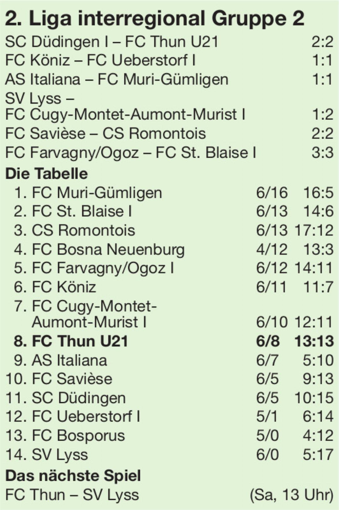 SC Düdingen I – FC Thun U21 2:2 (1:1)
