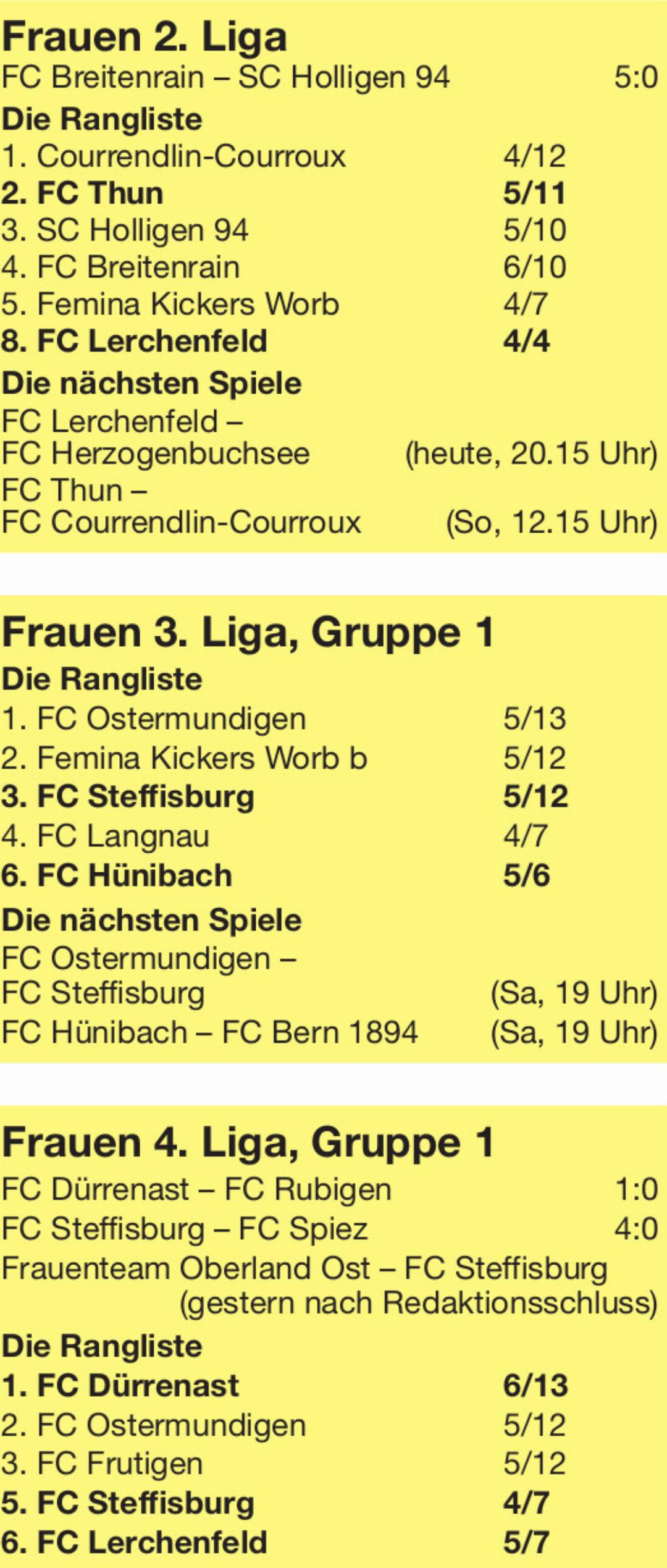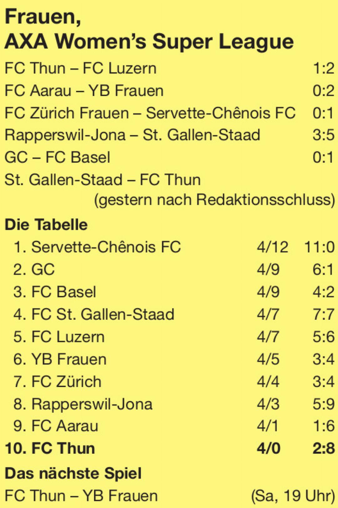 Gestern, nach Redaktionsschluss, gastierte Thun in St. Gallen, am Samstag kommen die YB Frauen in die Stockhorn Arena.