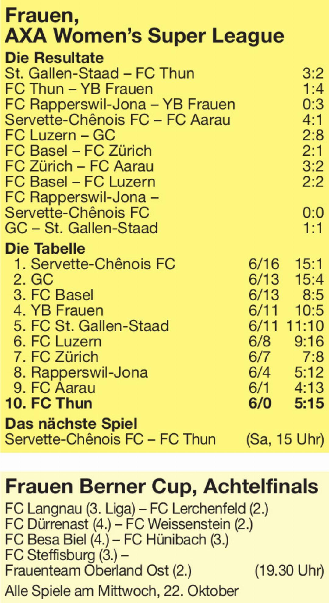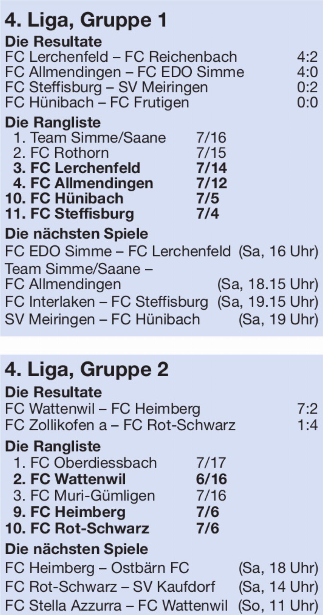 Der Coach trauert einzig der unnötigen Niederlage gegen Heimberg nach, sonst gibt es wenig zu bemängeln. «Die Niederlage gegen Heimberg war unnötig», blickt er auf den bisherigen Saisonverlauf zurück. Im Hinblick auf die fünf vor der Winterpause noch folgenden Spiele bleibt der Trainer optimistisch. «Ich bin grundsätzlich mit dem bisherigen Verlauf zufrieden, wir gehen weiterhin mit der Absicht auf den Platz, jedes Spiel zu gewinnen, Zielsetzungen setzen wir uns dann aber erst in der Winterpause.»
