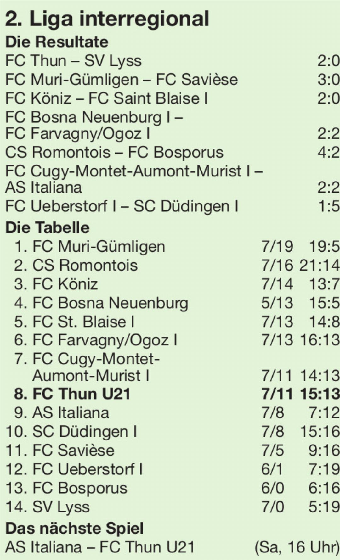 FC Thun U21 – SV Lyss 2:0 (1:0)