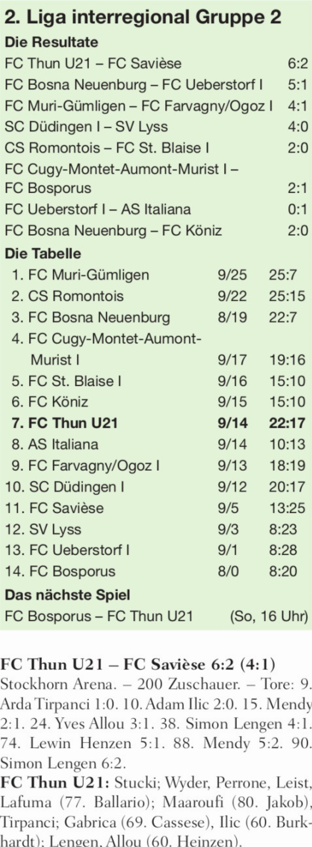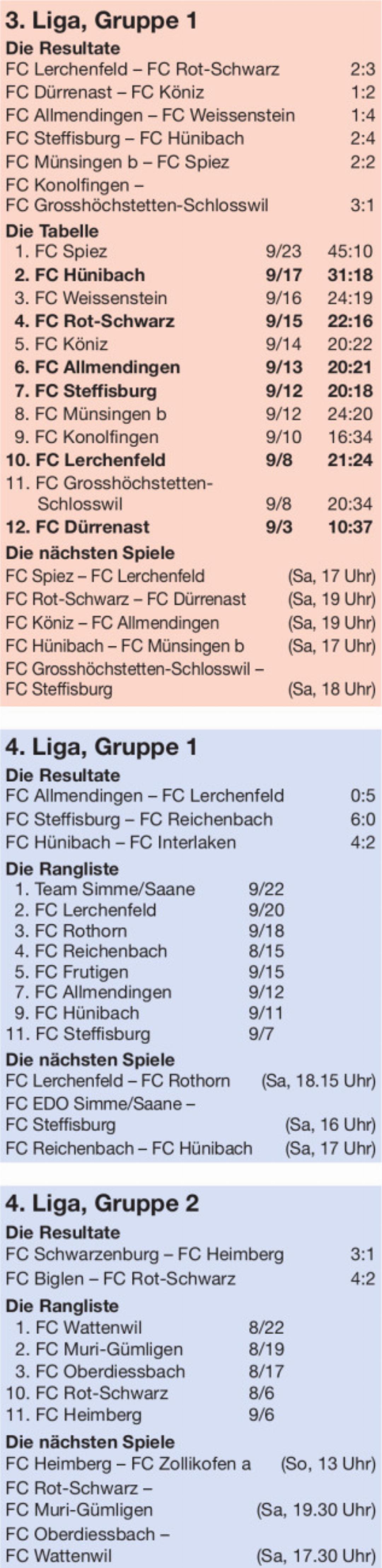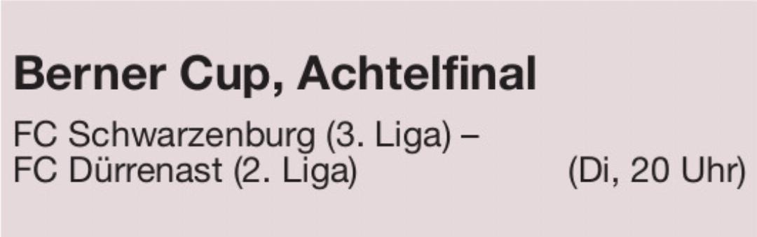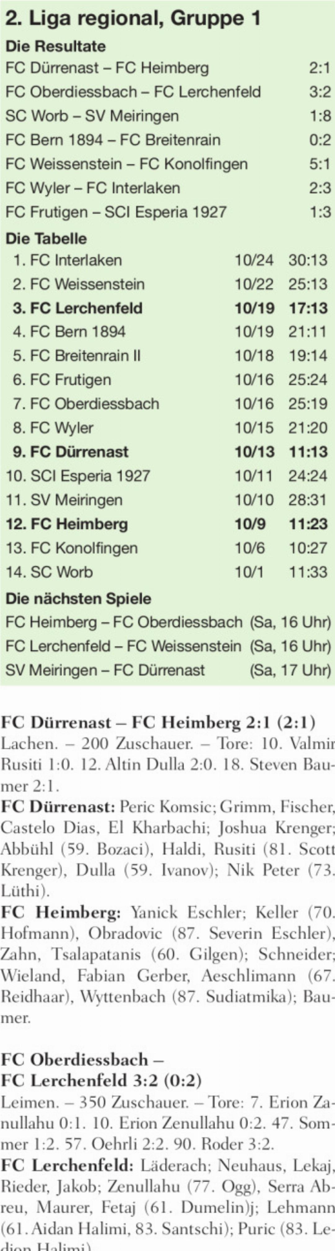Auf den FC Dürrenast kommen vor der Winterpause noch heikle Aufgaben zu. Auswärts beim SV Meiringen und FC Interlaken ist es schwierig, Punkte zu holen, zuhause ist Breitenrain noch Gast auf dem Lachen. «Unser Ziel aus diesen drei Begegnungen sind sechs Punkte», sagt der optimistische Coach Cagtay Iric. Auf Punktezuwachs vor Neujahr hofft auch Heimberg-Cheftrainer Dominic Aeschbacher. In den Heimspielen gegen Oberdiessbach und Meiringen sowie auswärts beim FC Breitenrain gilt es zu punkten, um den Anschluss ans Mittelfeld nicht zu verlieren.