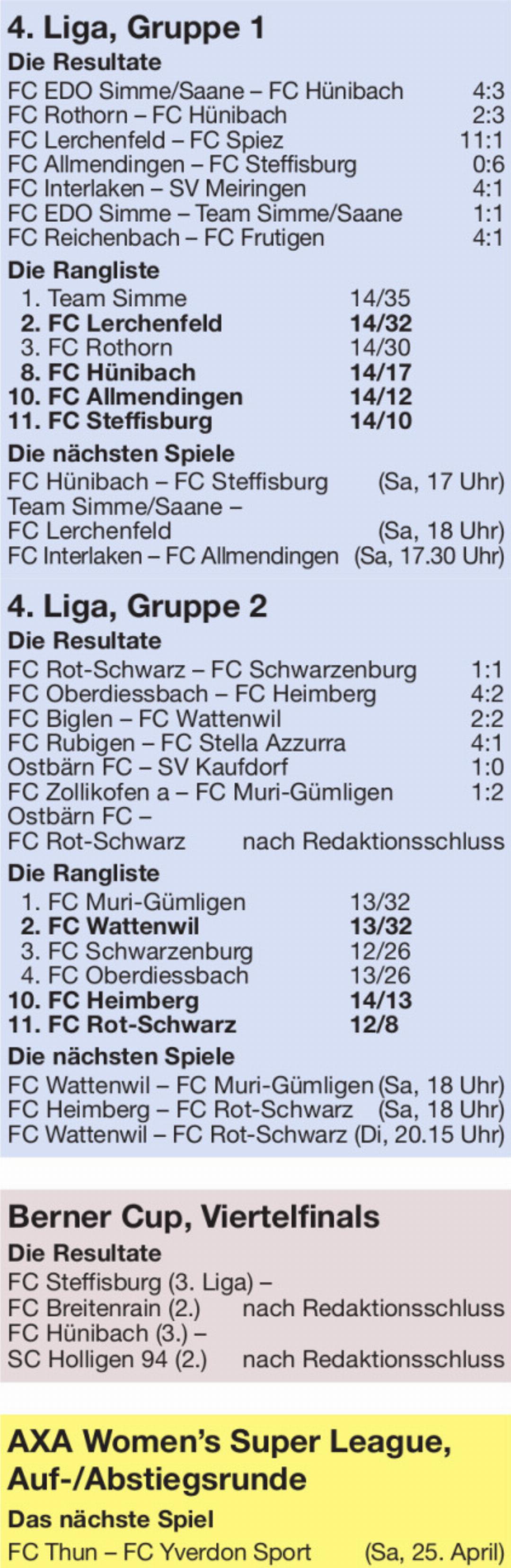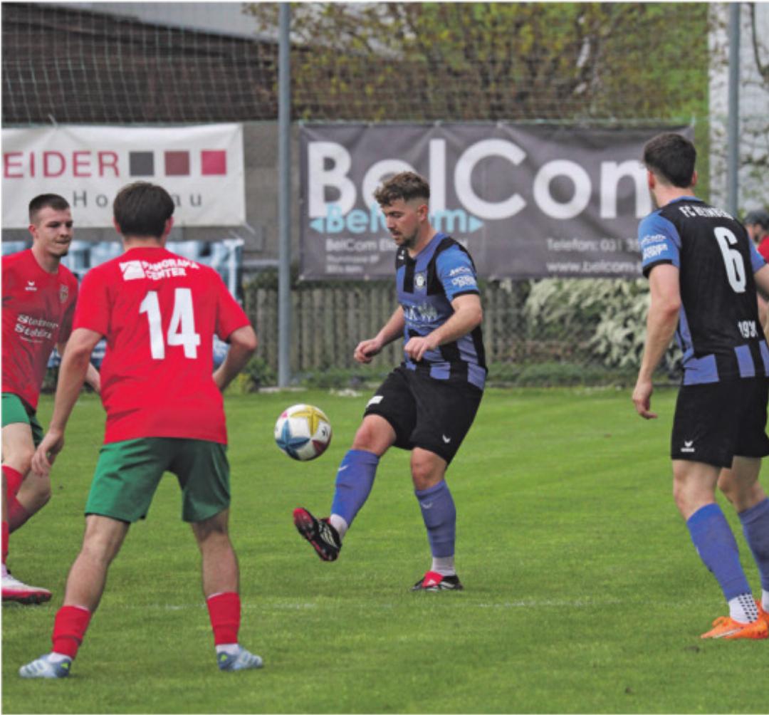16.04.2026 Sport-ReportagenLangsam, aber sicher entfernt sich der FC Heimberg vom Tabellenende. Vergangene Woche resultierte ein 4:0-Auswärtssieg beim FC Konolfingen und am Wochenende holte das Team von Trainer Dominic Aeschbacher auch im Heimspiel gegen den FC Lerchenfeld einen wichtigen Punkt.