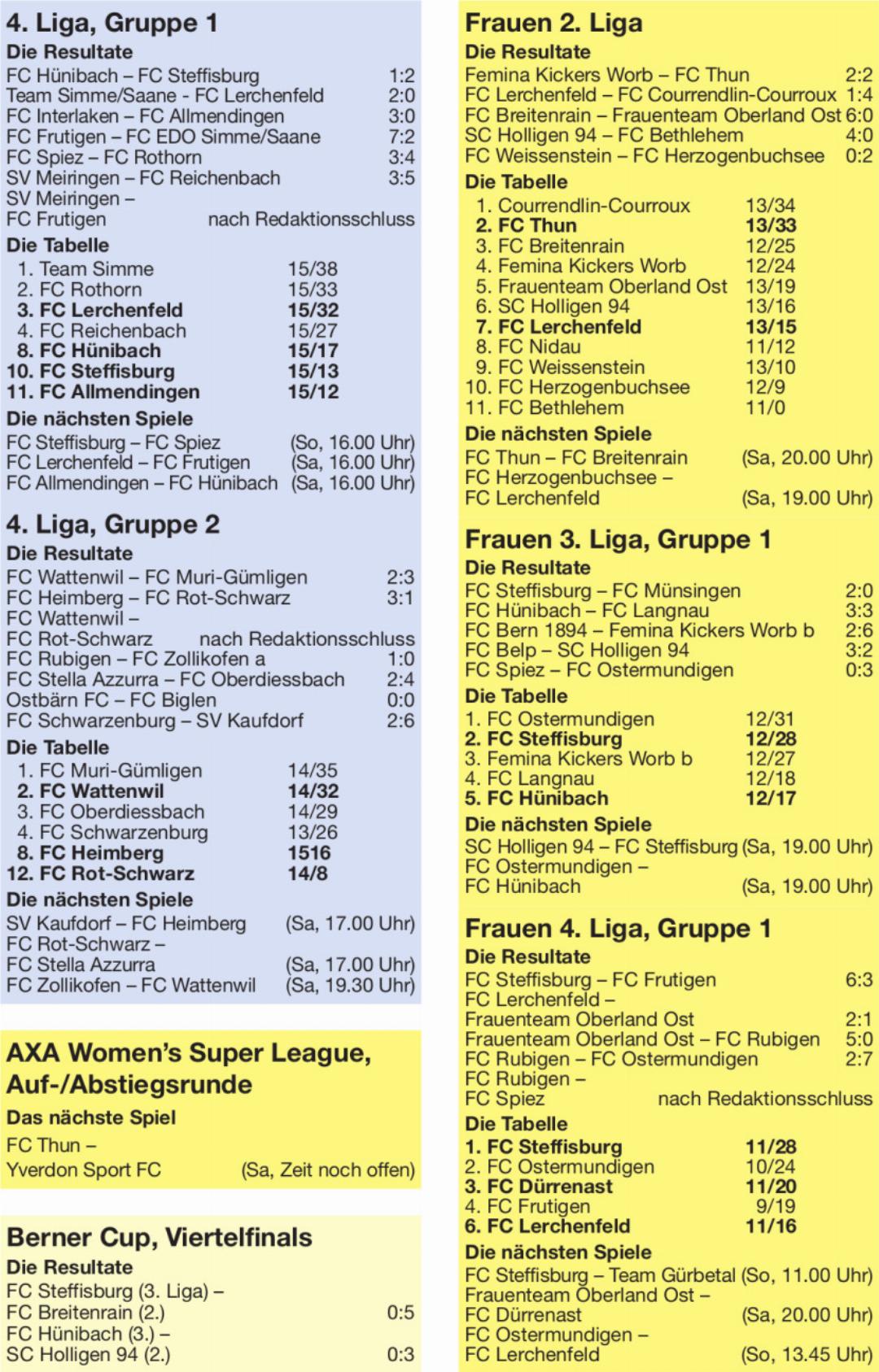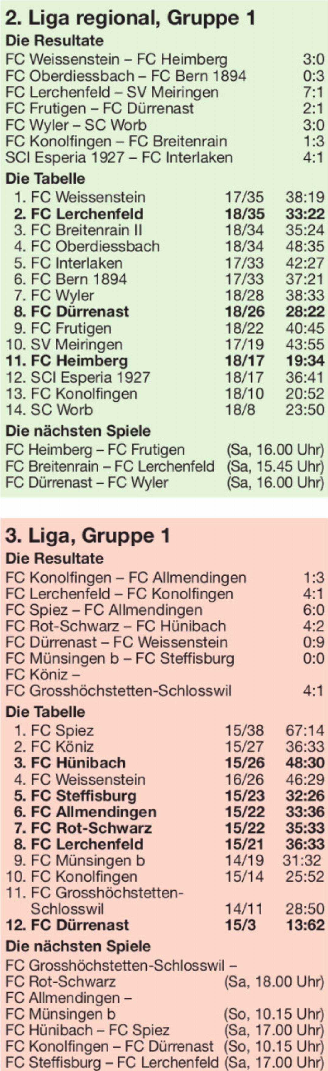 Weissenstein. – 200 Zuschauer. – Tore: 12. Rüfenacht 1:0. 45. Peña 2:0. 59. Berghuis 3:0. – Rote Karte gegen Fuhrer, Heimberg (85.).