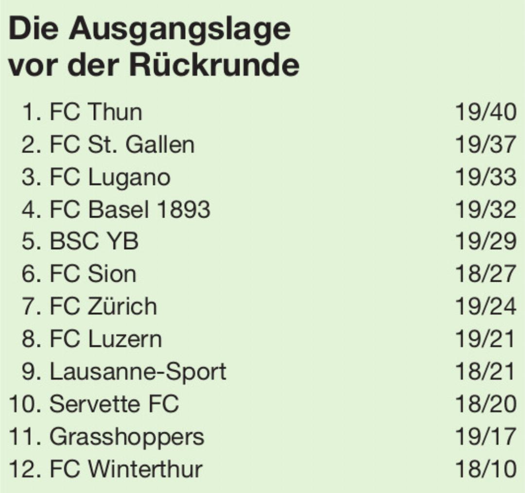 Die Art und Weise, wie die Thuner von Erfolg zu Erfolg eilen, ist beeindruckend. Vor Saisonbeginn herrschte bei den Experten landauf, landab Einigkeit. Winterthur, Thun und GC kämpfen um den Klassenerhalt, eine Platzierung unter den ersten Sechs, die für das Bestreiten der Meisterrunde berechtigt, traute den Berner Oberländern kaum jemand zu – ausser sie selbst. Trainer Mauro Lustrinelli hielt sich zwar schon vor dem ersten Meisterschaftsspiel wie immer in vornehmer Zurückhaltung, verhehlte indes nicht, dass er die Teilnahme an der Meisterrunde anstrebe.