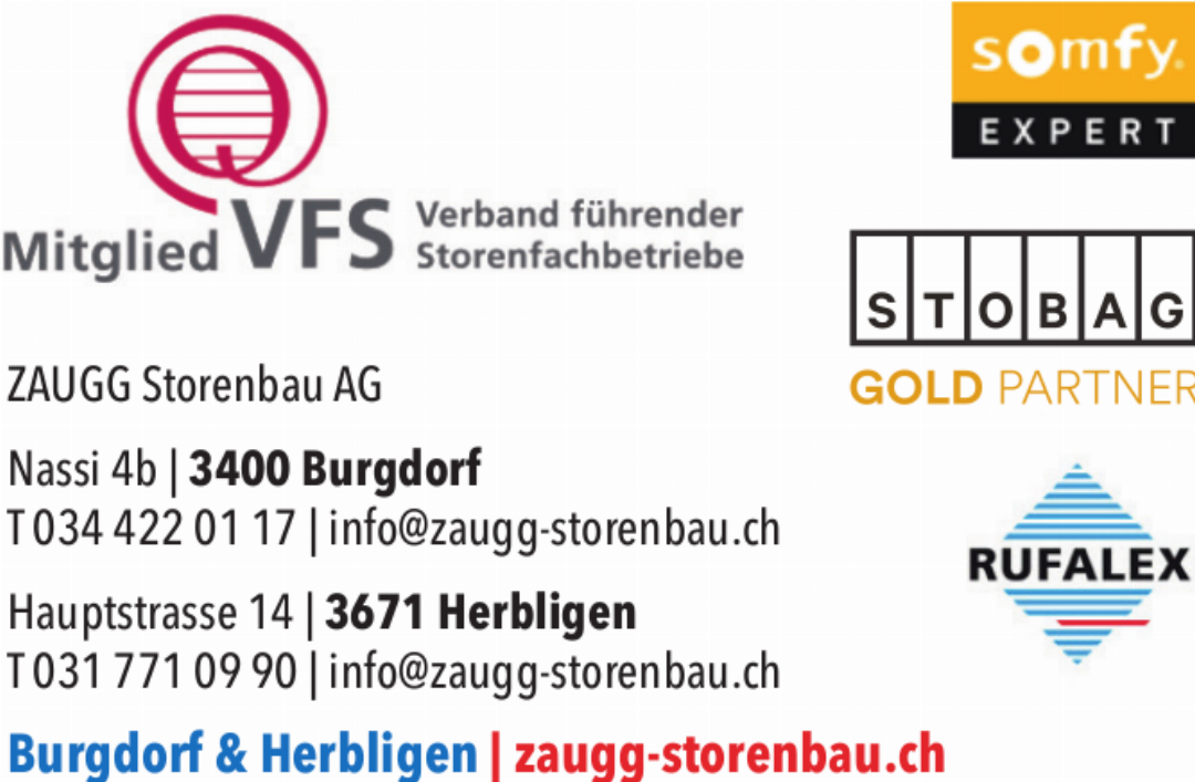 Ralf Wenger ist seit 2014 Inhaber und Geschäftsführer der Traditionsfirma ZAUGG Storenbau Burgdorf, die er von Hanspeter Zaugg käuflich erworben hat. Da der Firmenname ZAUGG einen guten Ruf geniesst, hat Ralf Wenger daran festgehalten. «Wir bedienen vorwiegend Privatkunden, Liegenschaftsbesitzer und Immobilienverwaltungen.